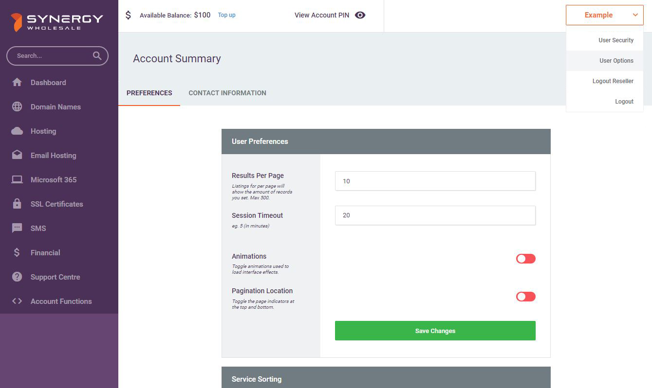 Aside from exporting and the above settings, Additional Users should be treated the same as providing admin access to your Synergy Wholesale Management System. New users will have access to all other Synergy Wholesale Management System features including the ability to manage and create services as well as top-ups and financial settings.