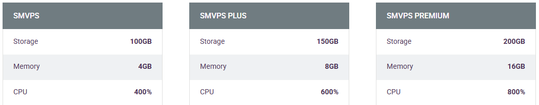 Currently we offer three SMVPS configurations all utilising the previously mentioned premium hardware.